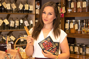 «Казалось бы, специи, как специи, что в них такого необычного может быть? Но нет, скажу я вам, разница есть, и вы непременно ее почувствуете, придя к нам в гости и послушав аромат. А ведь зачастую по аромату к нам в лавочку и подходят покупатели! Наши специи перемалываются целиком (без предварительного отжима эфирных масел) и смешиваются по фирменной рецептуре без лишних ингредиентов – таких, как соль, сахар, усилители вкуса. Также у нас представлен большой ассортимент масел для здоровья и продукция местных производителей. Для меня основа выбора товаров – натуральный состав! Наше любимое творческое занятие – формировать вкусные подарки, и это не только чай со сладостями – так для гурманов, которые любят готовить, у нас имеются красиво оформленные специи, масла, кулинарные книги», – рассказала хозяйка магазина специй и приправ «Шафран».